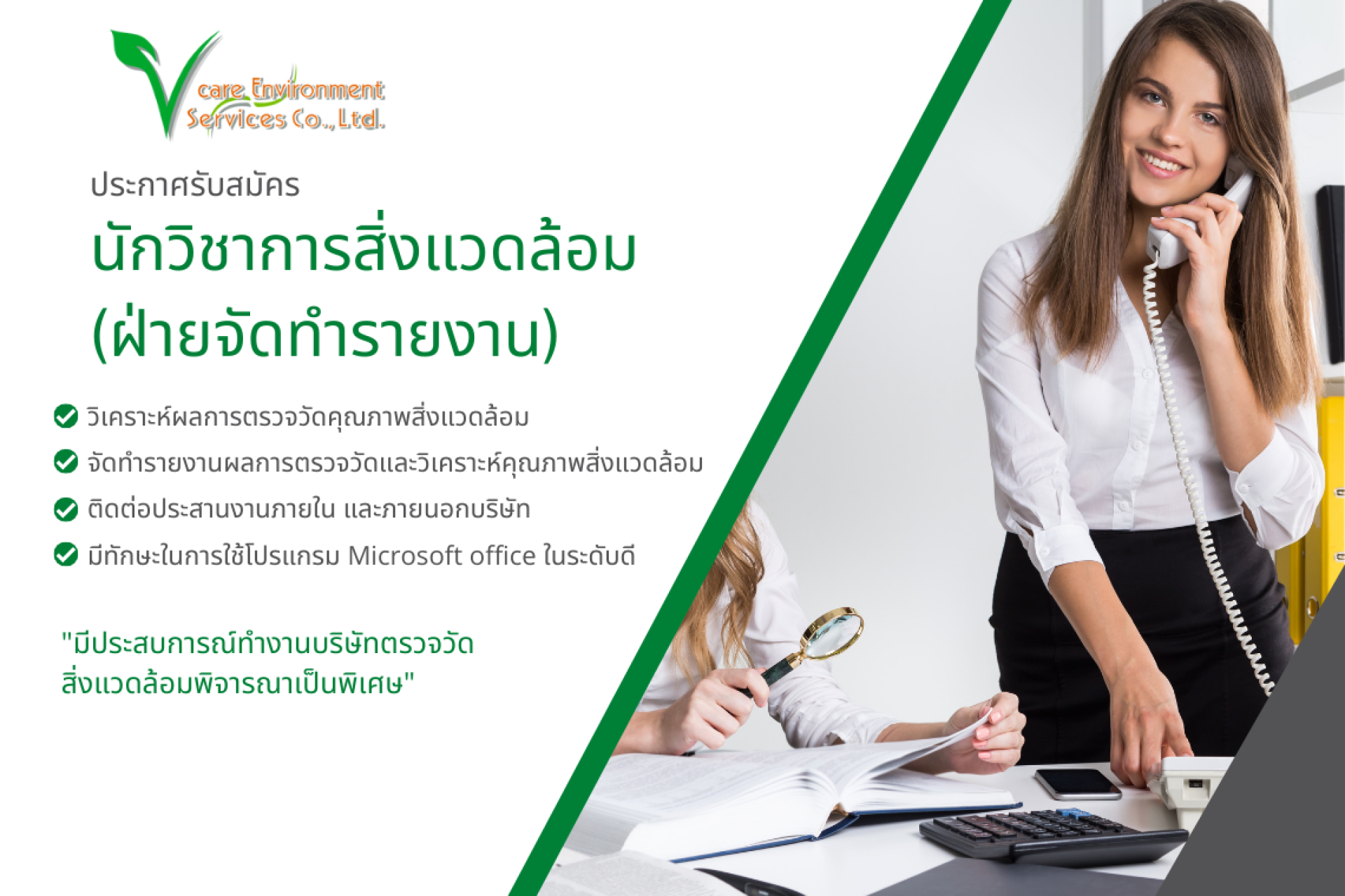 รับสมัครงานตำแหน่ง : นักวิชาการสิ่งแวดล้อม (ฝ่ายจัดทำรายงาน)
